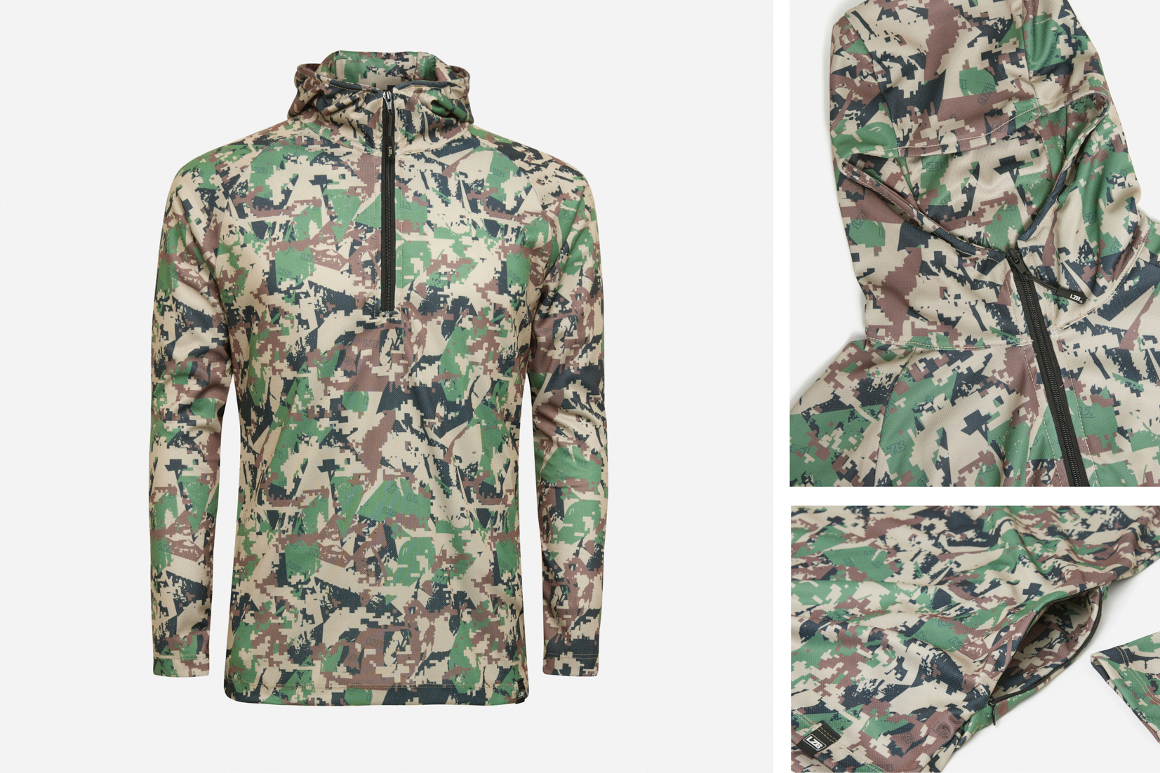 Esta camiseta CON CAPUCHA,para mosquitos, sol, o camuflar tu cabeza, esta creada para los dias de caza intensos, con altas temperaturas. Es ultraligera, PESO DE 1200GRS. Fabricada con canales de ventilacion para un secado ultra-rapido, en 10 minutos esta seca, y con una alta transpirabilidad gracias a su material microperforado. Puedes usarla como camiseta interior tanto en primavera como invierno. No produce rozaduras. POLIESTER PERFORADO Y VENTILADO.